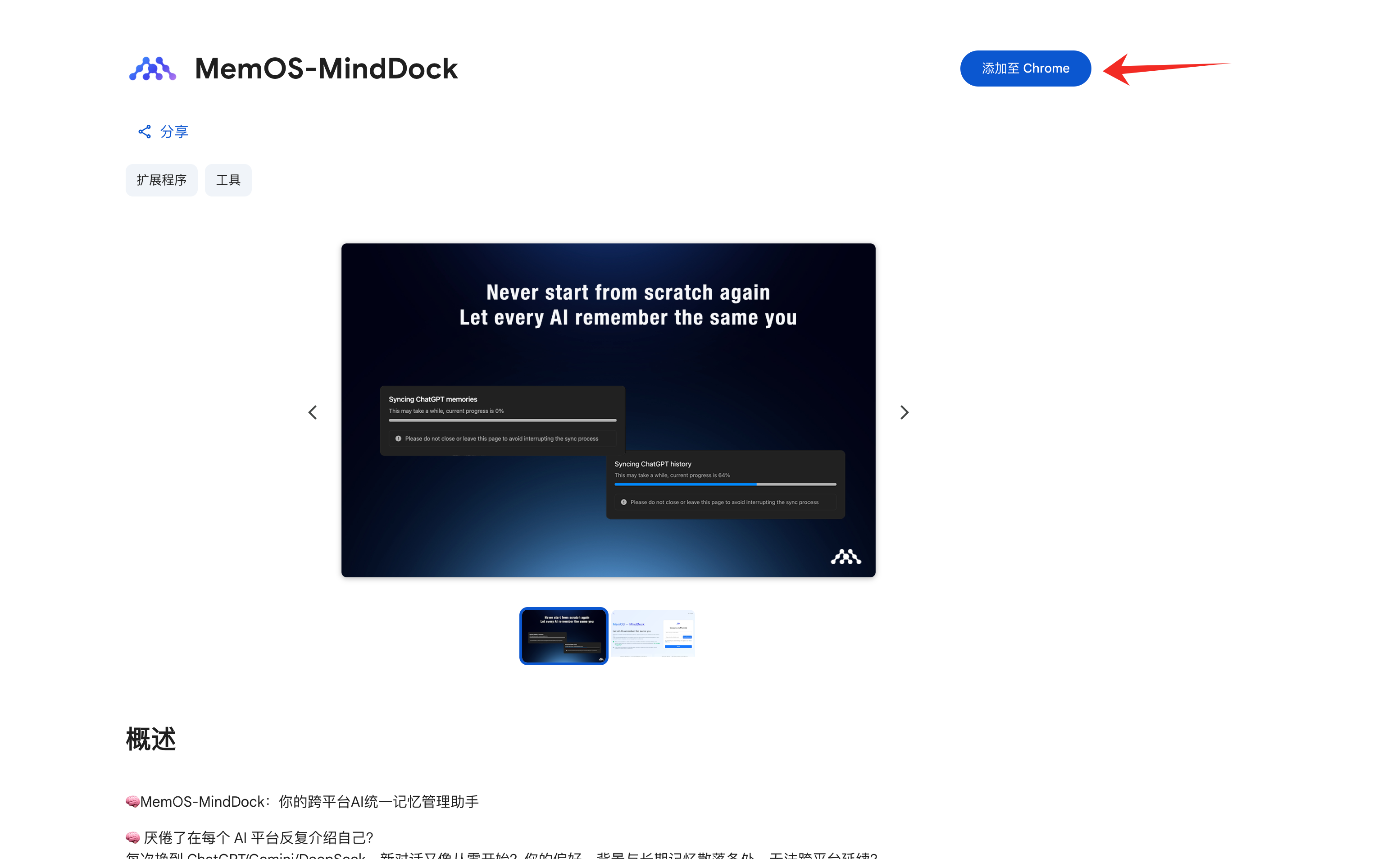 Chrome 应用商店下载地址:https://chromewebstore.google.com/detail/memos-minddock/jfijhogdailnomegmlopeijjehccfibp?hl=zh-cn