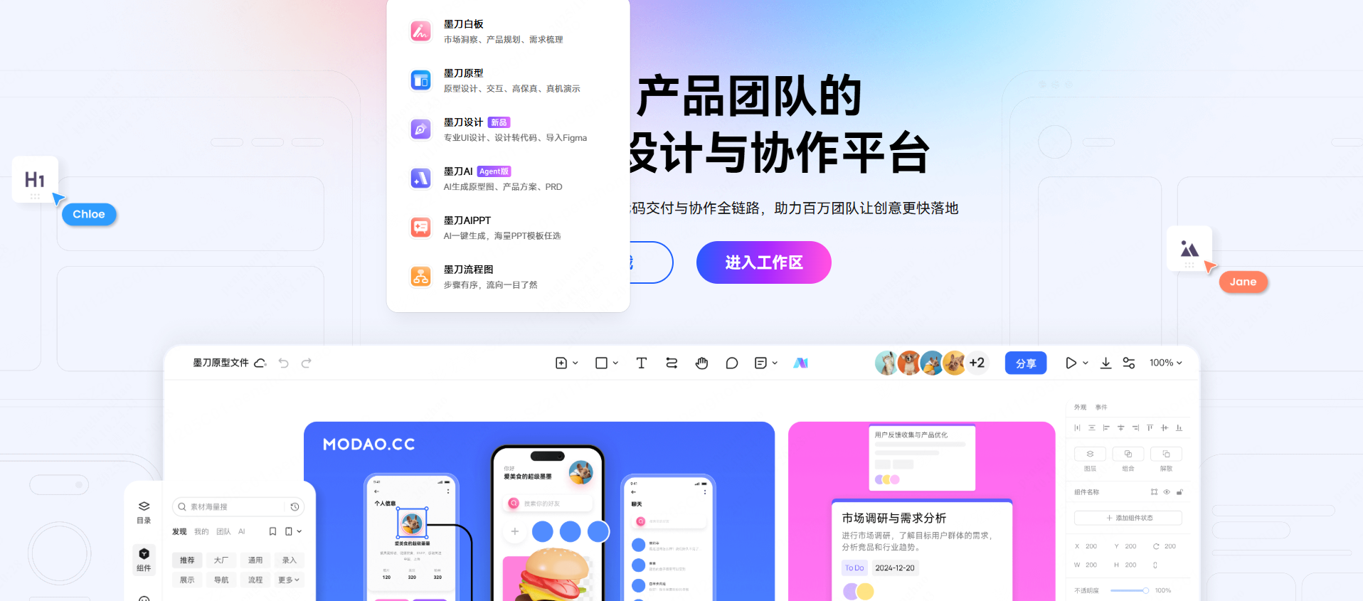 如果说 Pixso 与 Figma 是在同一赛道上的竞对,那么墨刀则在 2025 年展现出了截然不同的演变路径。墨刀不再满足于仅仅作为一款出色的原型工具,而是迅速拓展其边界版图,演变为一个集原型、白板、设计、AIPPT 等多项功能于一体的综合产品设计平台。这种演变,使得墨刀与 Figma 的比较,呈现出更多维度的差异。