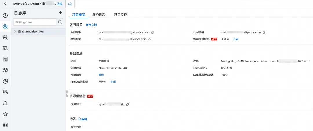 因此,第一步我们需要将 Agent 接入云监控 2.0,创建 Project 和对应的 Logstore,采集 Agent 的运行数据 TraceLog,用于评估的数据输入。以下我们为一个电商领域的智能找挑应用创建一个 Project 和 Logstore。
