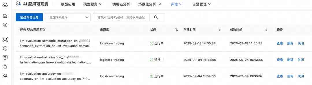 评估任务创建成功后,会在目标 SLS Project 中创建出定时 SQL 任务,周期性查询日志库中的数据,根据评估任务中内置的评估模板计算查询到的日志数据的评估分数。
