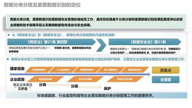 满足合规要求:国家《网络安全法》《数据安全法》等法规要求建立分类分级保护制度。