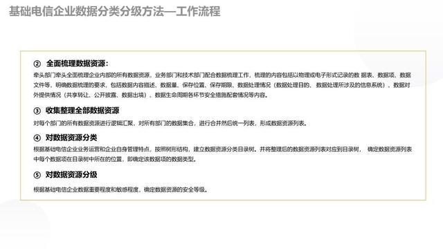 全面梳理:对企业全部数据资源,明确内容、量、位置、期限、处理情况等。