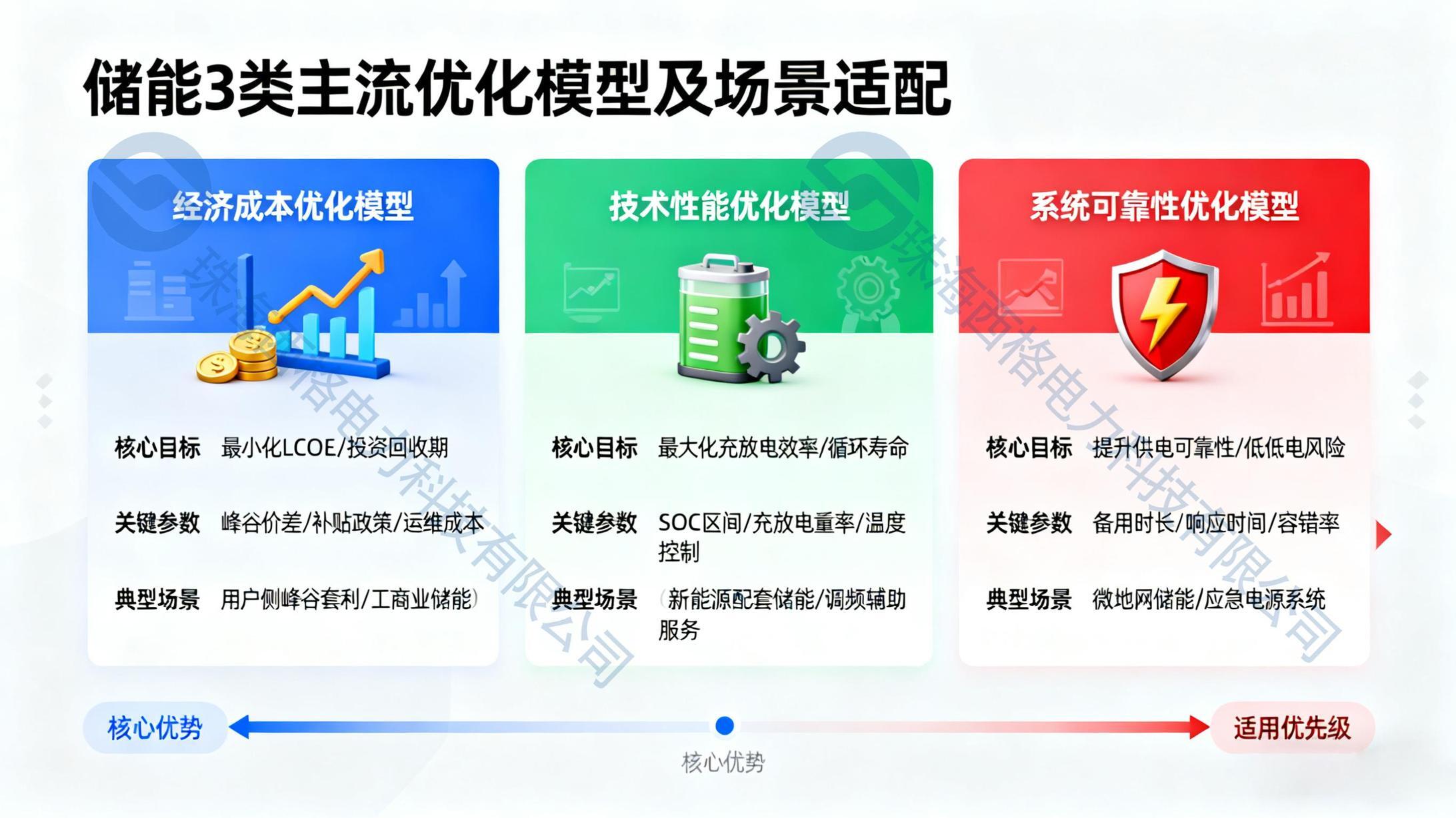 根据项目核心目标(平抑波动、峰谷套利、多目标协同),选择对应的优化模型,量化计算 “最小合理容量”,避免 “经验主义”。
