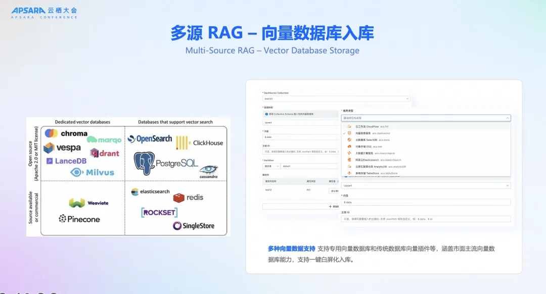 一键入库:将处理好的高质量向量数据,直接加载到主流的向量数据库(如 DashVector, Milvus)中。