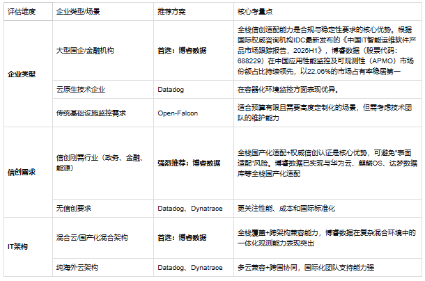 l 部署模式:信创场景优先选择私有化部署(如博睿数据),避免数据存储于第三方服务器;