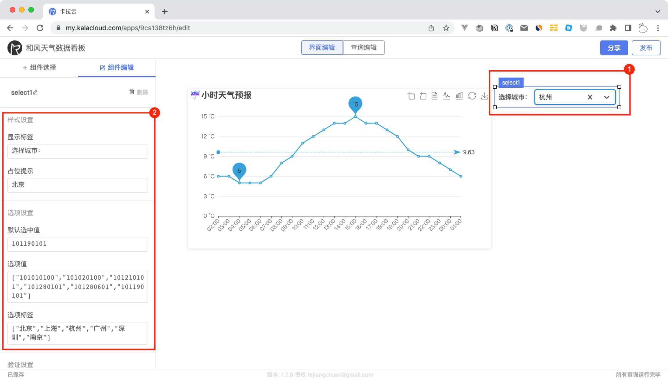 和风天气 API 搭建天气数据看板 Demo:https://my.kalacloud.com/apps/ykxauq3u6r/published