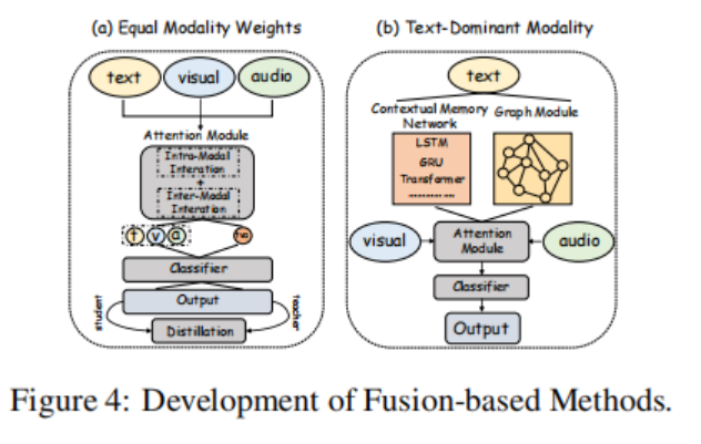 先前的研究通过使用循环或自注意力层来建模序列上下文,但长距离依赖关系的学习仍然具有挑战性。如何在决策过程中平衡并整合上下文情感线索特征与多模态融合特征,以及如何确定哪些融合策略在不同模态中最为有效,仍然是开放且重要的研究课题。