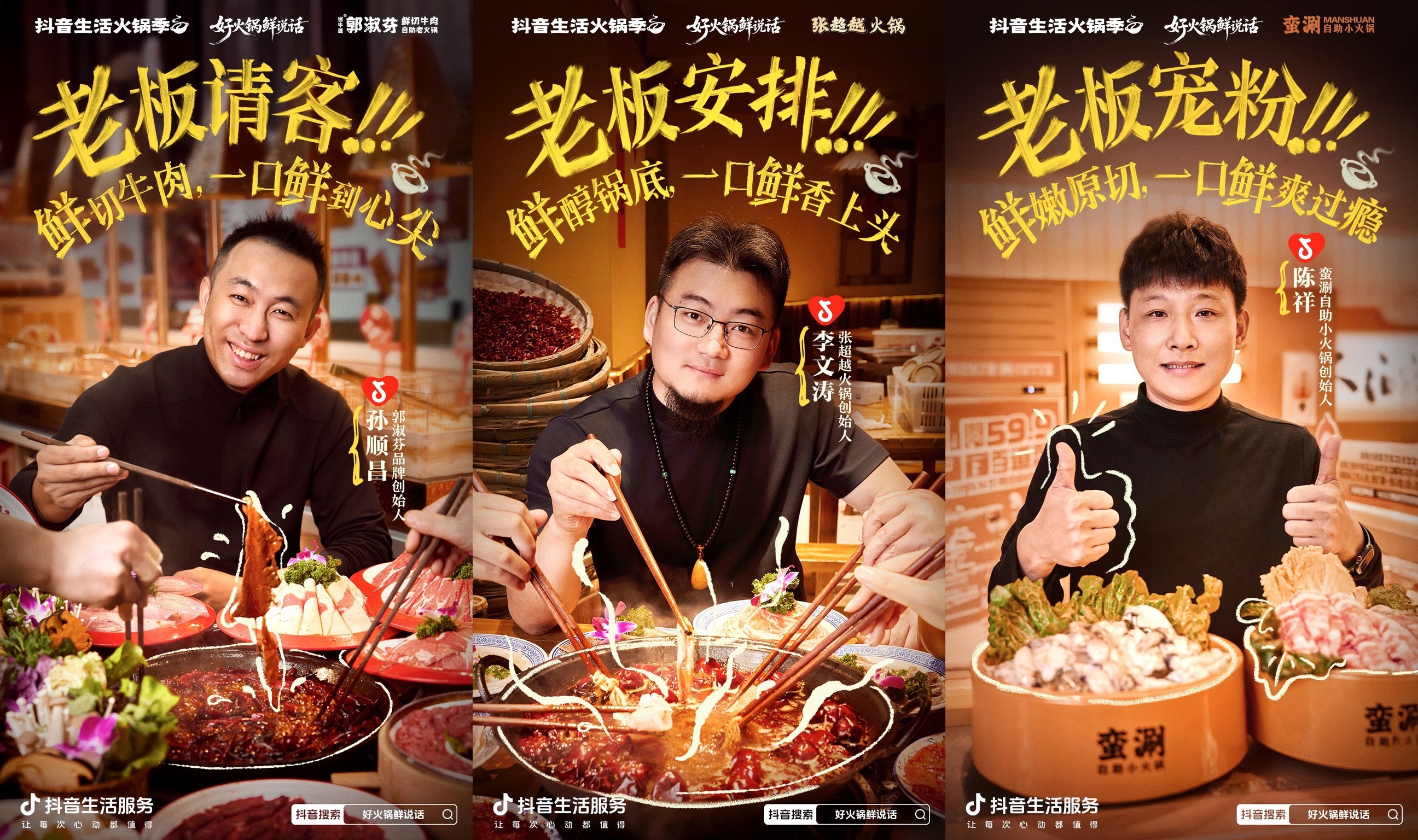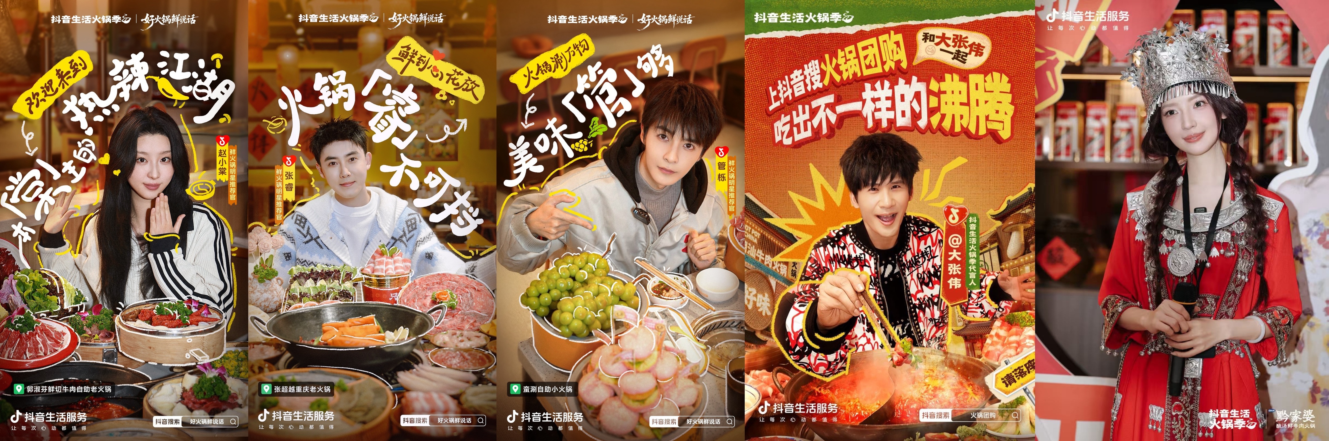 通过线上内容的持续破圈,“鲜”被以更具象、更可感的方式呈现出来。作为抖音生活火锅季代言人的大张伟以及赵小棠、张睿、管栎等鲜火锅明星推荐官,陆续走进本地火锅店,把“鲜切”“鲜底”“鲜活”拍成了能看见、能感受到的真实体验;秦牛正威则以“一日锅友”的身份参与线下活动,从更贴近消费者的视角补充了“鲜”的日常感。