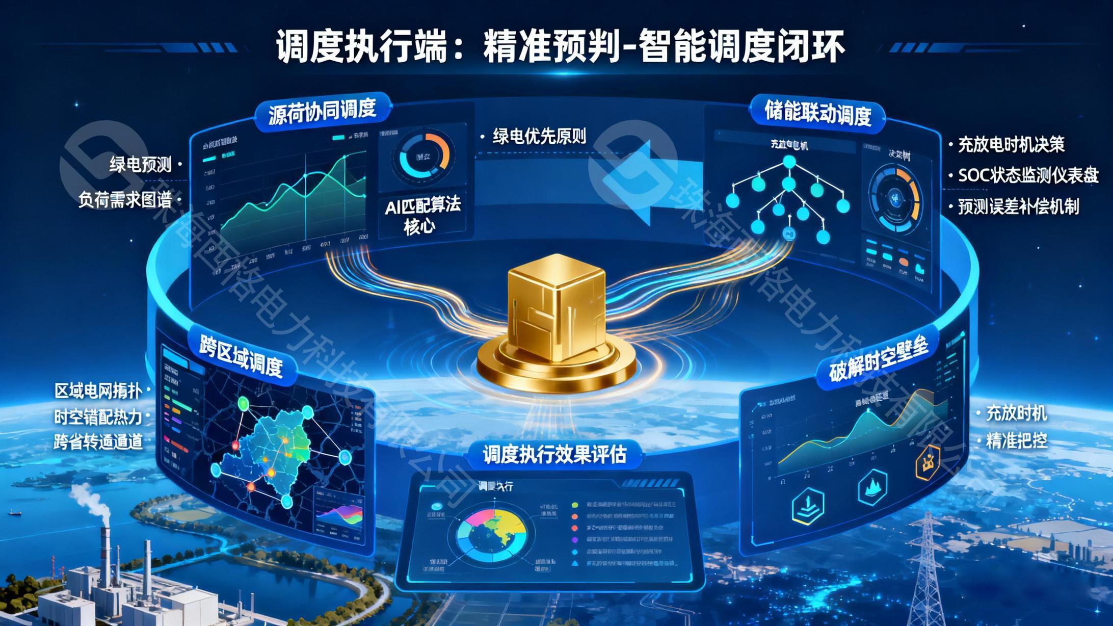 AI 预测的最终价值落地于调度执行,通过构建“生产端出力预测-消费端负荷预测-供需平衡预测”的联动模型,生成最优调度方案,实现绿电消纳最大化、电网运行最稳化、能源成本最低化的目标。其具体应用体现在源荷协同、储能联动、跨区域调度三大核心场景。