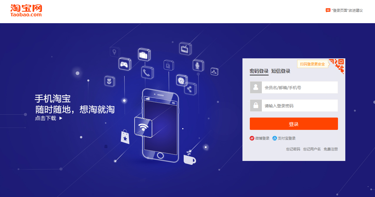 - 获取支付宝登陆元素,点击手动扫码登陆