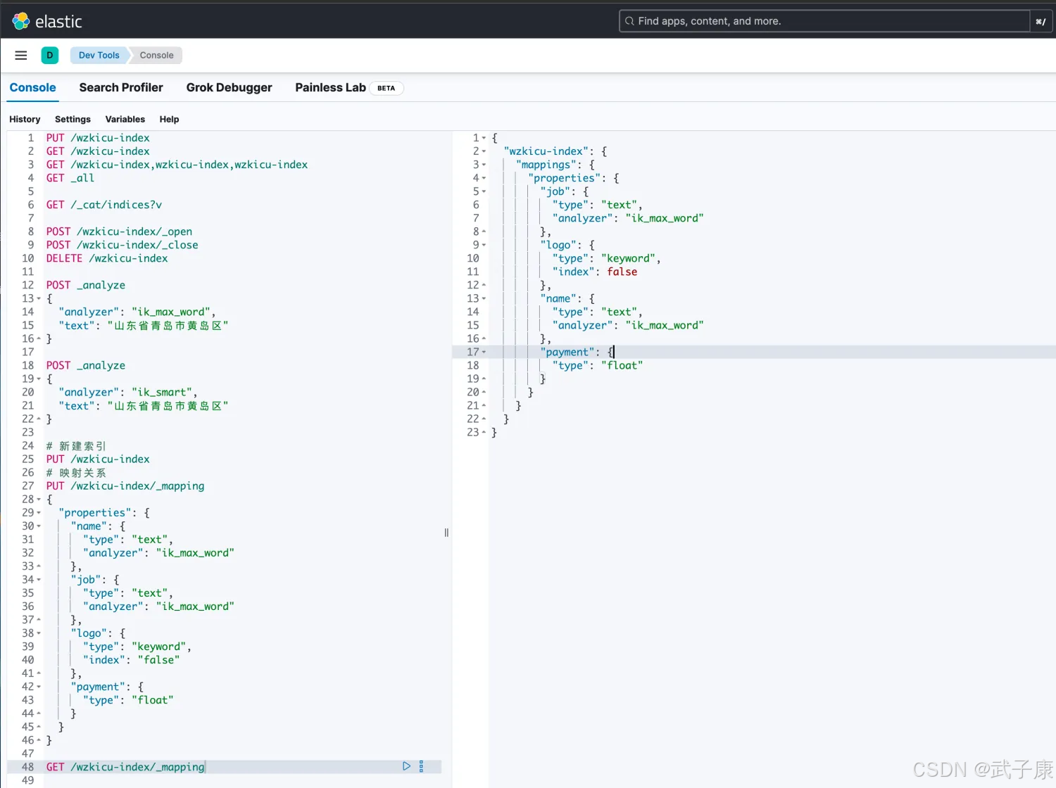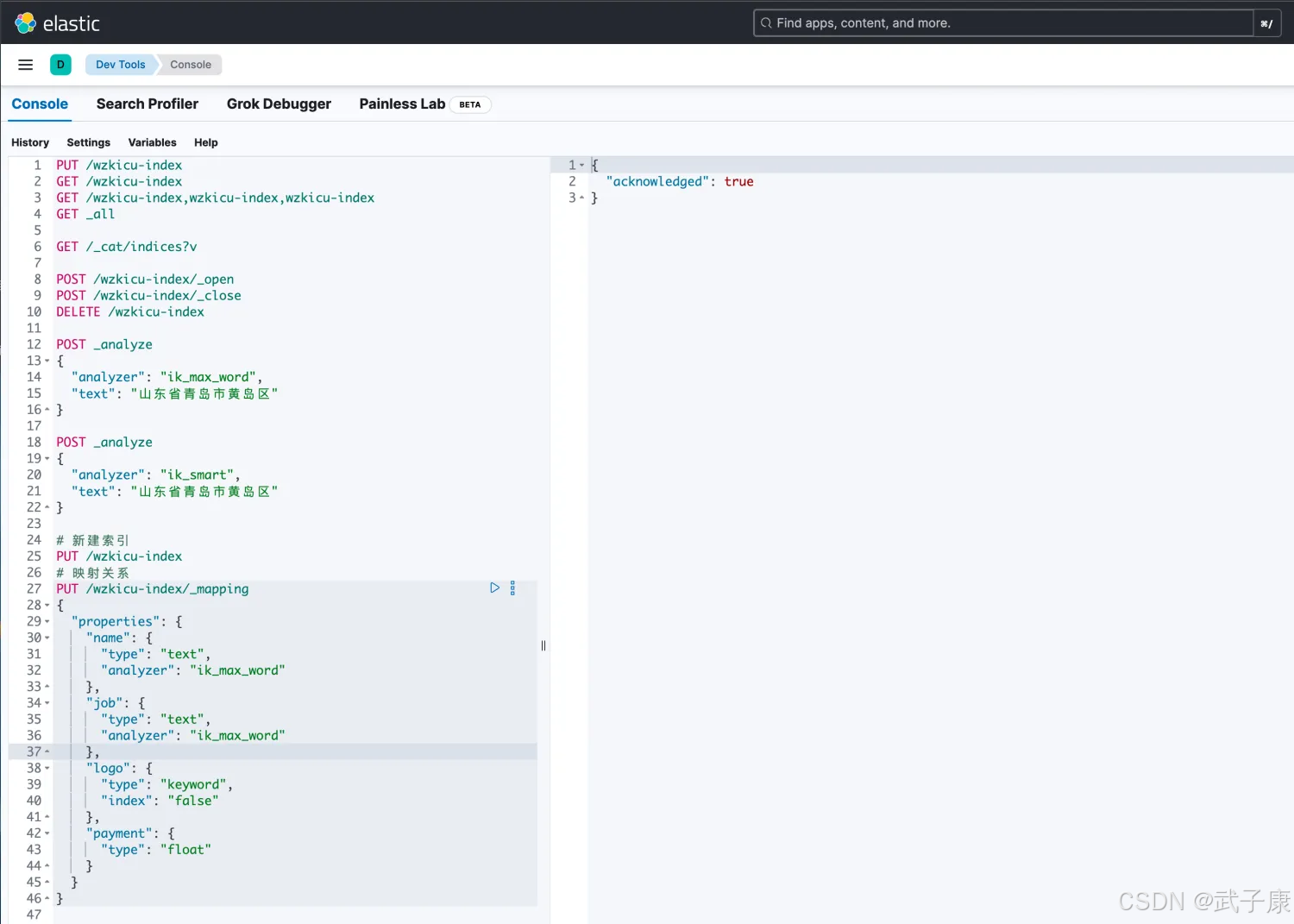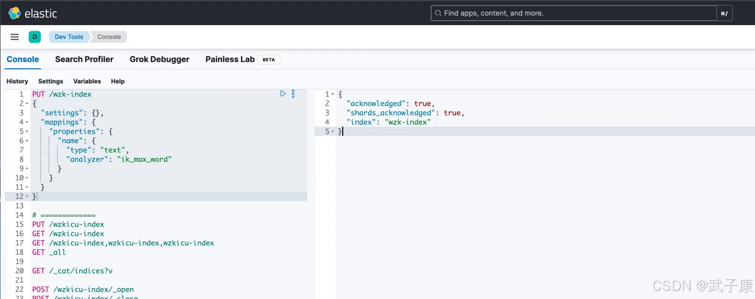 analyzer:指定分词器 一般使用 IK 分词器 ik_max_word ik_smart