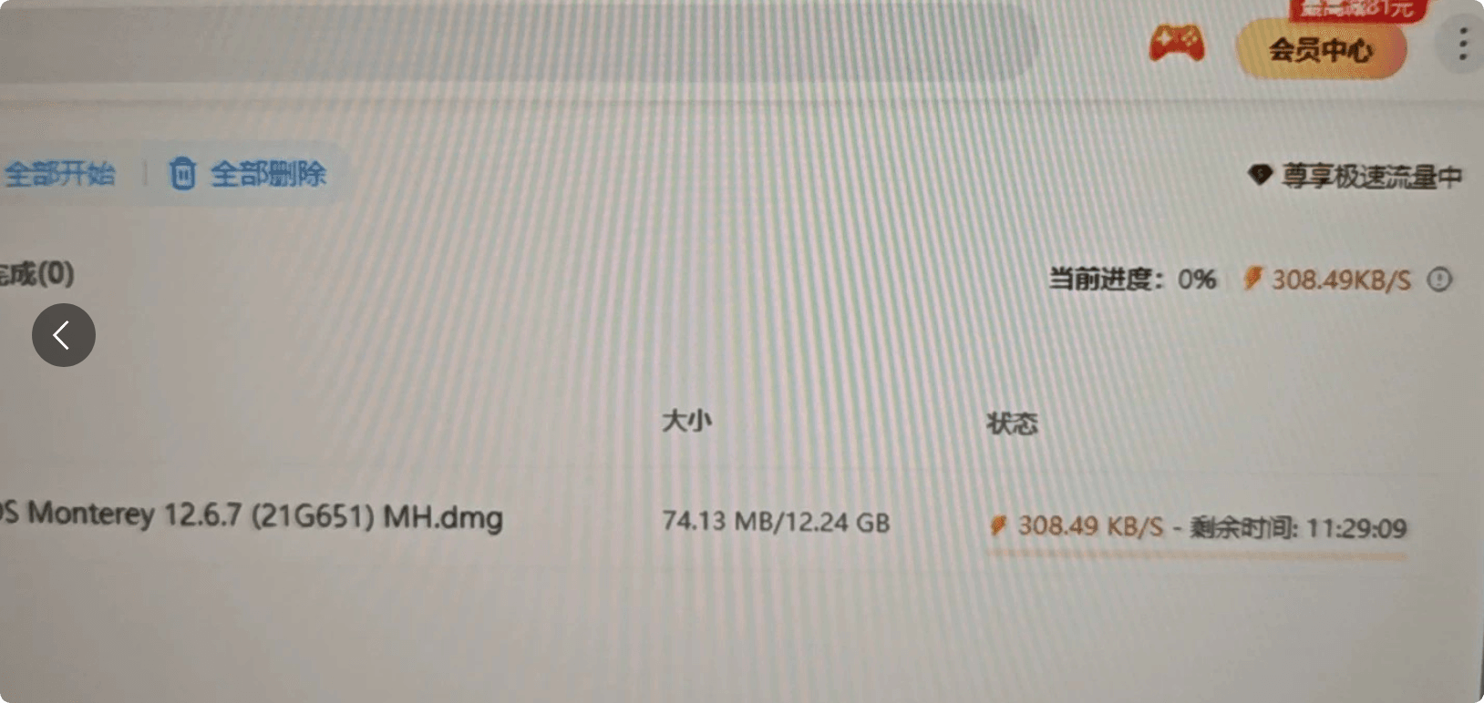 我是那种坐以待毙的人吗?当然不!我默默打开了某鱼,租了个一日 SVIP 账号。登录成功!我心想:“这次还不秒下载?”嘿嘿,你猜怎么着?速度确实“提升”了——飙升至 300KB/秒!这 SVIP 是掺了水吗?