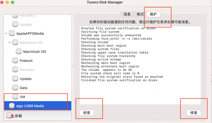 不仅如此,Tuxera NTFS for Mac 还能够帮助我们管理维护磁盘空间,对 NTFS 卷进行修复、创建 NTFS 磁盘映像、创建 NTFS 分区等。与其说它是一款硬盘读写软件,不如说它更像一个磁盘管家,时刻管理维护磁盘状况。