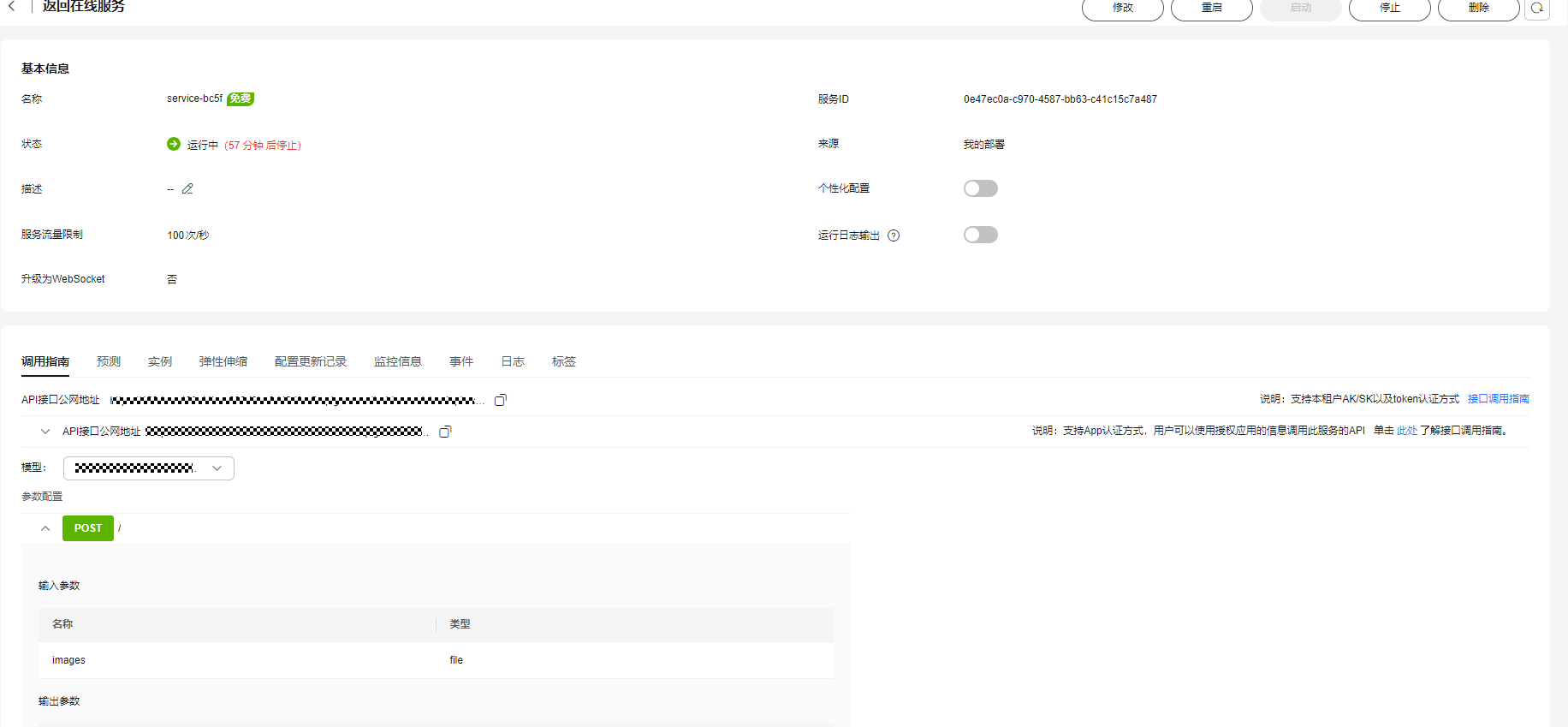 部署后选择云服务区域->北京四,点击确认,进入到模型管理界面,点击部署。