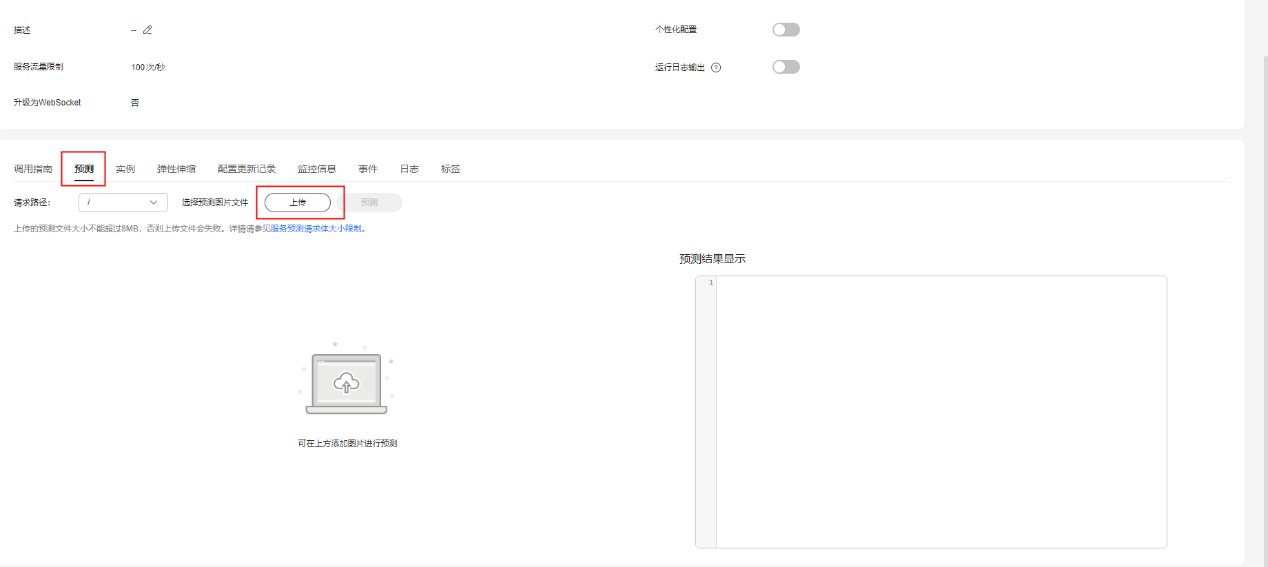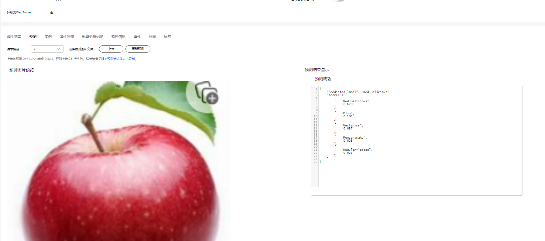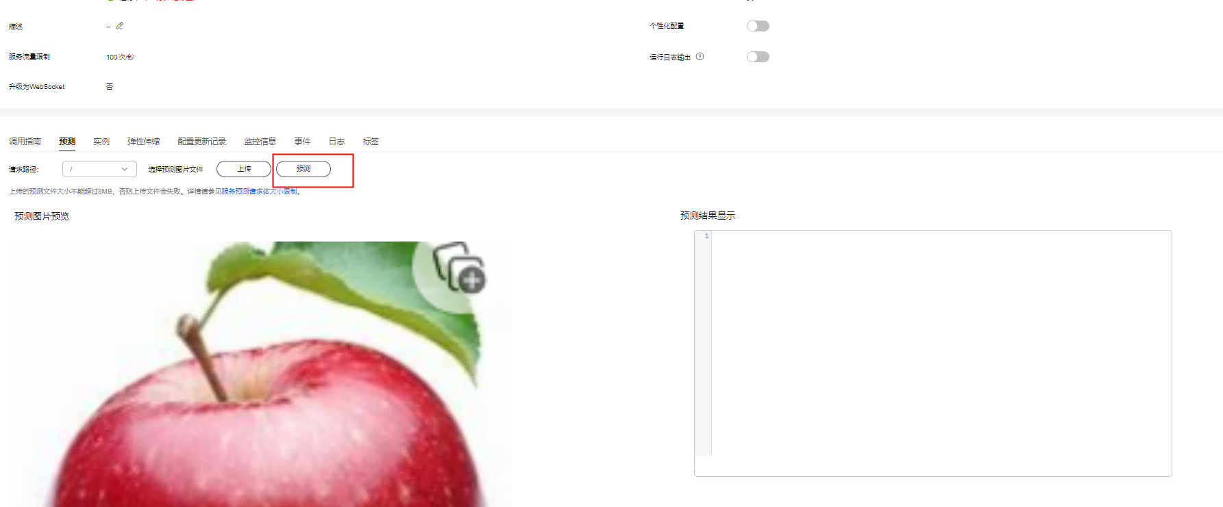 模型部署完成后,点击预测,上传需要识别的商品图片进行模型预测。(注意图片需要 jpeg 格式)
