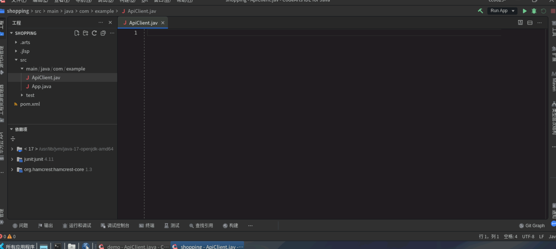 修改好后单击左边绿色三角形选择在 ApiClient 中运行主程序,运行文件。