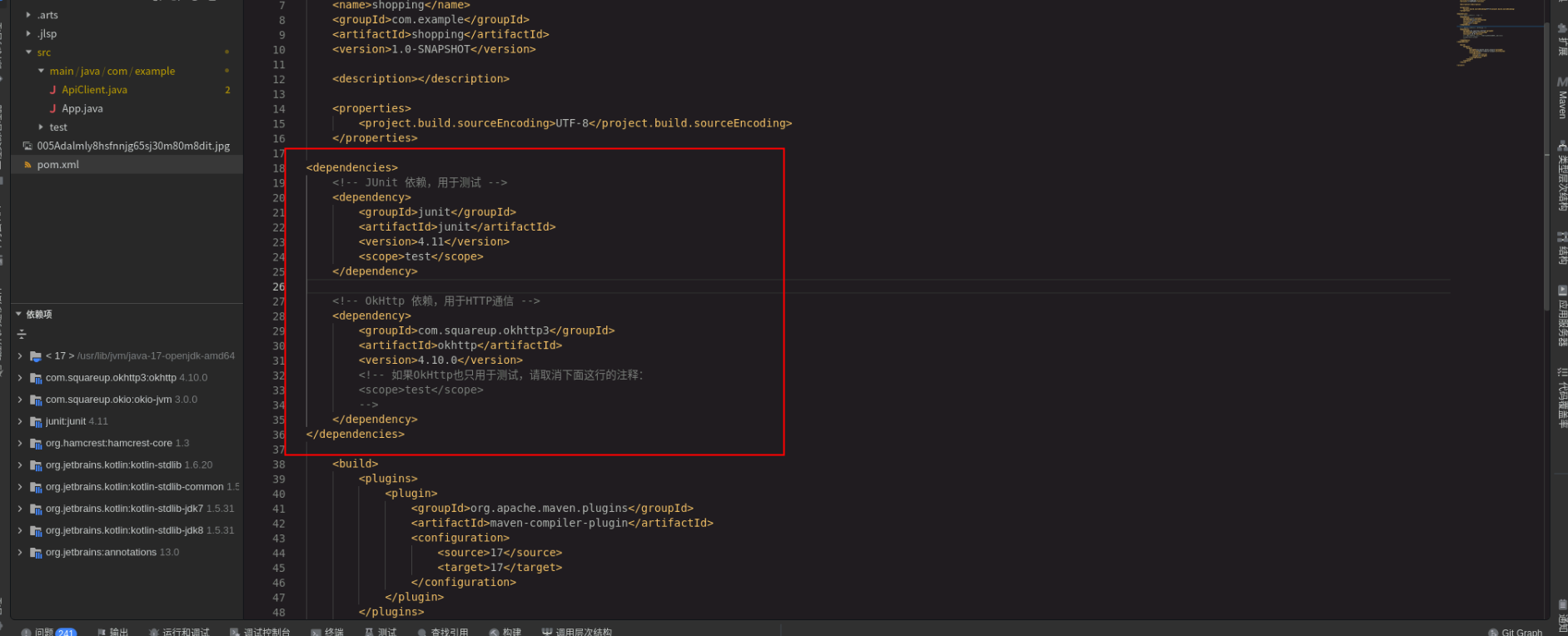创建完毕后,按照顺序依次进入目录 src-->main,然后左上角点击新建文件或者可以在 main 目录下右击创建文件,文件名--->ApiClient.java,然后按下回车键。