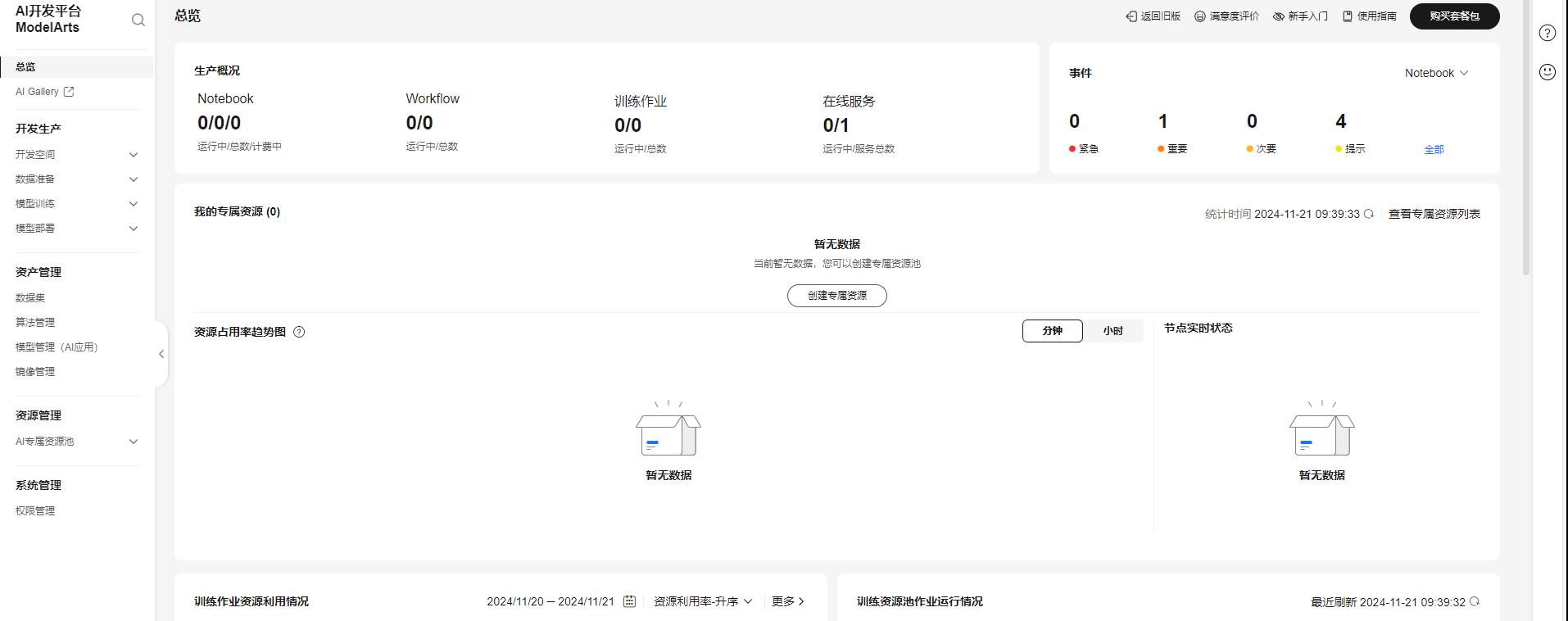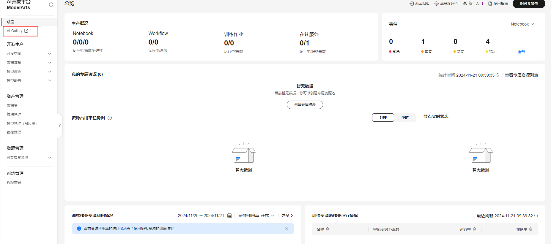 进入到 ModelArts 控制台后,左上角进入 AI Gallery。