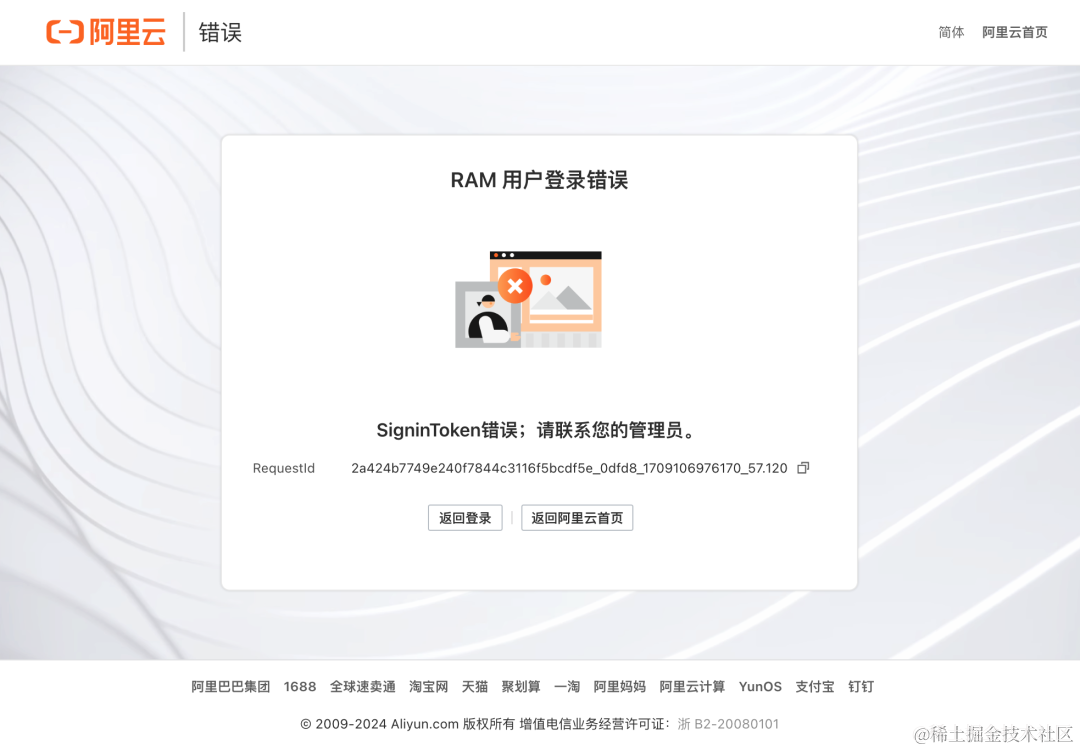上面介绍过 STS 模式登录的流程非常长,登录过程涉及到阿里云多个模块(STS、RAM、登录、SLS),所以在登录的流程中一旦出现问题很难排查。而且由于登录逻辑中包含多次重定向的操作,SLS 控制台本身很难自己排查客户登录不成功的根因。客户如果登录失败,一般会看到下面几种让人非常懵的结果: