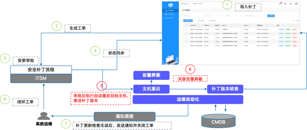 由于严格的监管要求,基金公司的补丁安装工作任务相对较为繁重,人工打补丁的方式操作耗时长,跟踪统计困难,导致效果难以保障。通过自动化+ITSM 流程相结合的方式,可实现补丁安装责任到人,分门别类,批量安装,同时便于统计复盘,能够不断减少在补丁安装上的人力投入,实现闭环管理。