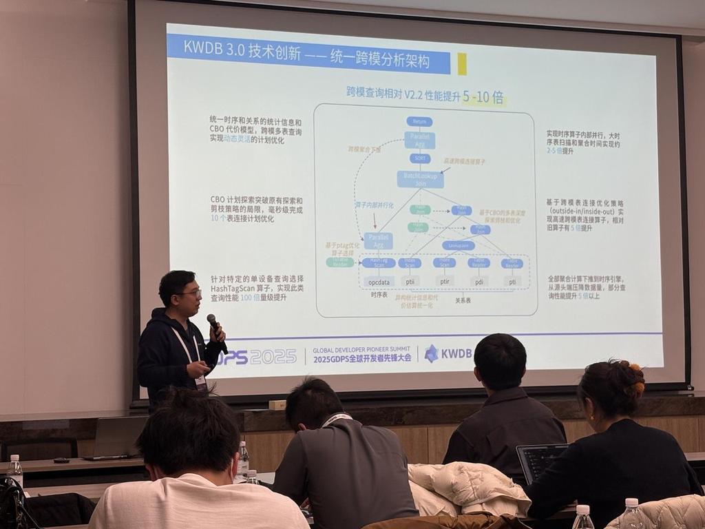 在该分论坛上,KaiwuDB 开源专家、KWDB 开源运营负责人郭旭东在演讲中也提出了一个新的趋势:开源已成为数据库与 AI(尤其大模型)深度融合的最佳协作平台。