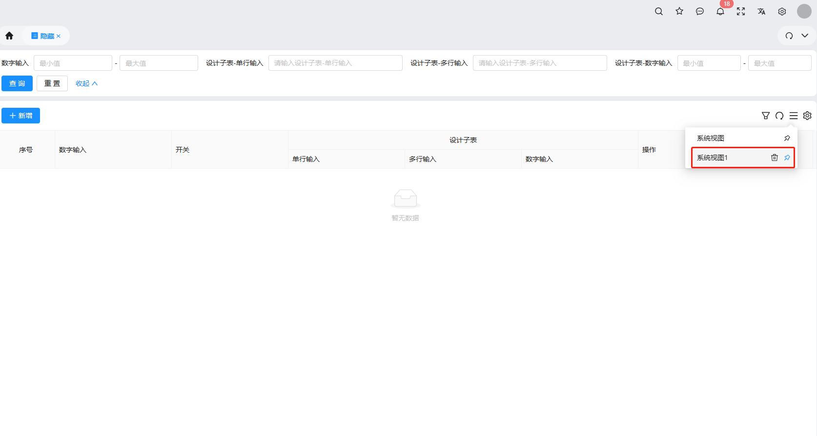 点击目标视图,列表会立即刷新,展示该视图配置的查询字段和列表字段,无需重新加载页面。