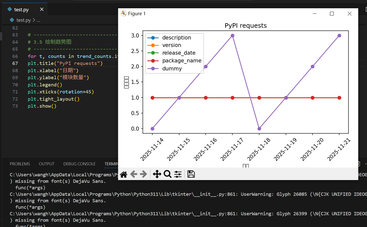 print("\n=== 每日模块统计 ===")for t, counts in trend_counts.items(): print(f"{t}: {counts}")