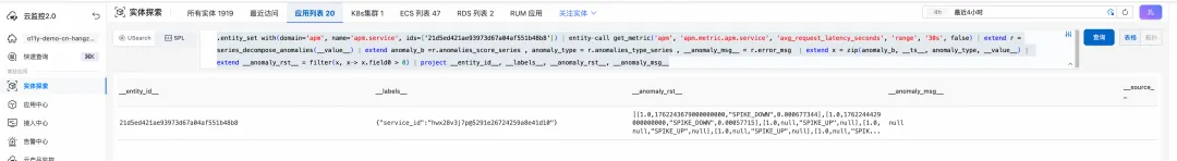 登录云监控 2.0 控制台,点击实体探索 -> SPL,输入 SPL,如下图所示: