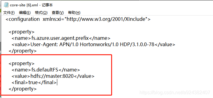 解决办法:进入 linux 的 hadoop 路径下 /etc/hadoop/core-site.xml,查看具体的 namenode 的端口号,该端口号就是主入口