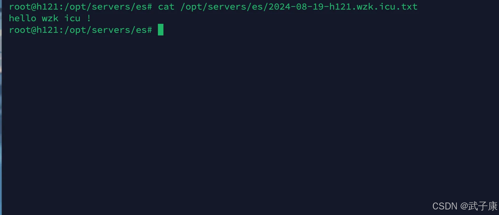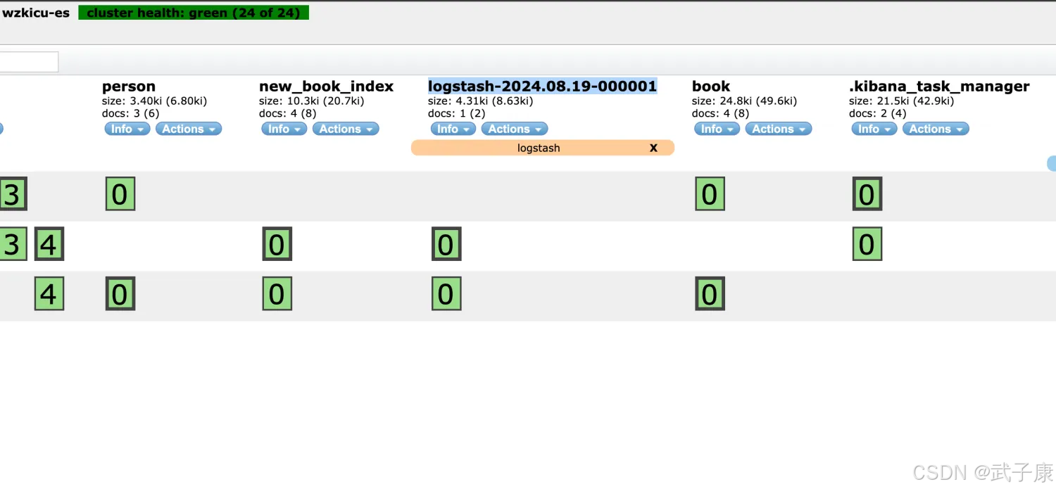 向控制台写入 hello wzk icu !查看 ES 集群中的数据如下图所示: