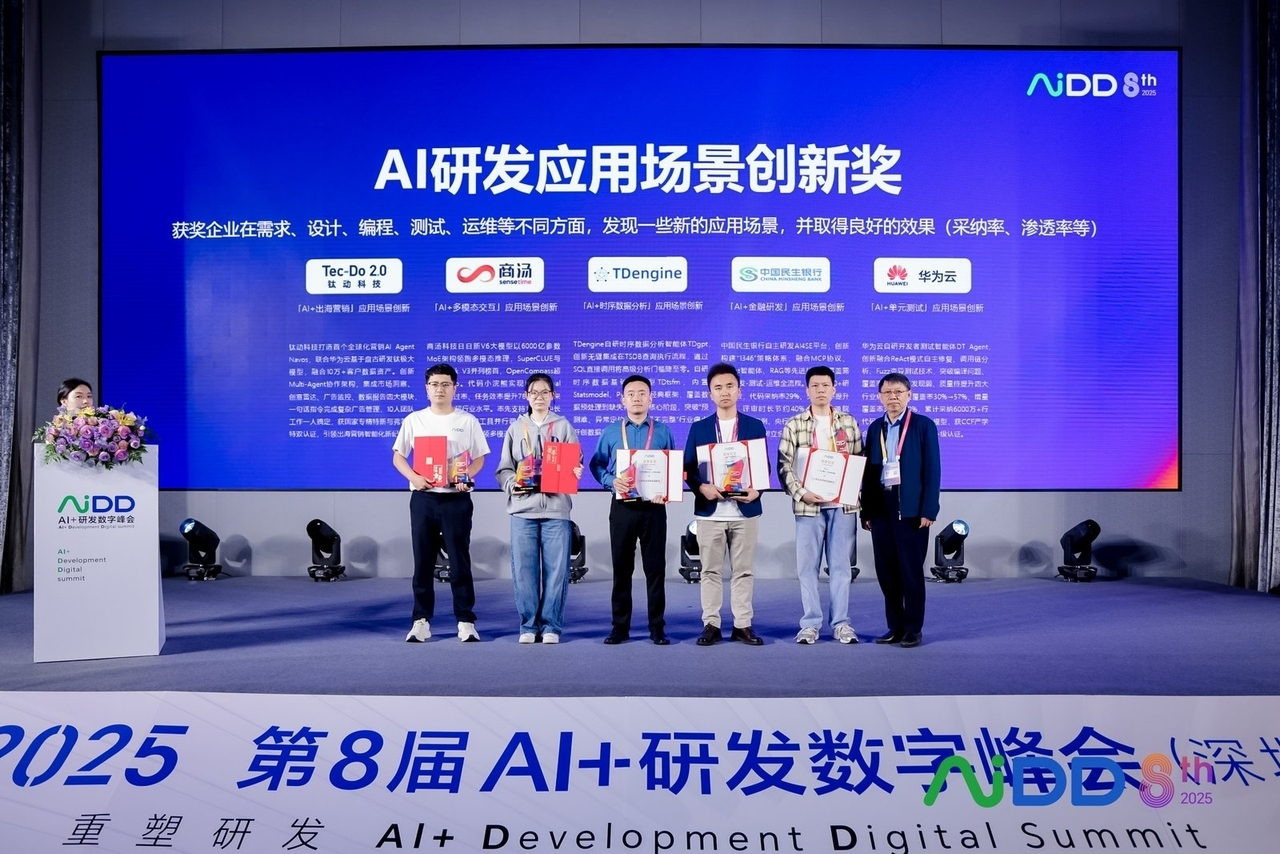 就在上周举行的第 8 届 AI+ 研发数字(AiDD)峰会上,组委会公布了年度“AI+研发”行动力标杆奖评选结果。这个由 AiDD 峰会组委会与深圳市软件行业协会联合主办、聚焦 AI 在研发全链路真实落地效果的权威评选,每年只把奖项留给少数在场景创新上真正走通的团队。今年,TDengine 凭借「AI+时序数据分析」的原创性实践成功入选,荣获“AI 研发应用场景创新奖”。