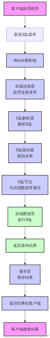 客户端应用程序通过 MySQL 协议向 MyCat 服务端发送 SQL 请求。