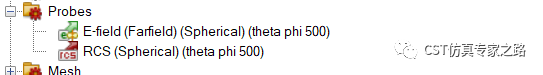 CST 软件扫入射角的单站 RCS 我们以后再说,本文就固定 Z+方向演示两个探针结果而已。