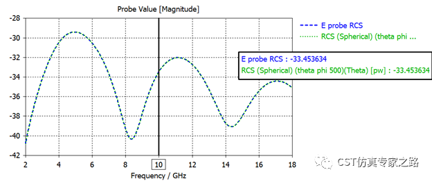 那么 CST 软件远场探针 E-field (farfield) 可以得到一样的 RCS 结果吗?当然,还能用来验证结果。