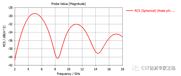 下面我们用 CST 软件电场远场的频域结果,后处理得到 RCS,然后再和探针对比。