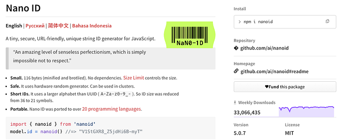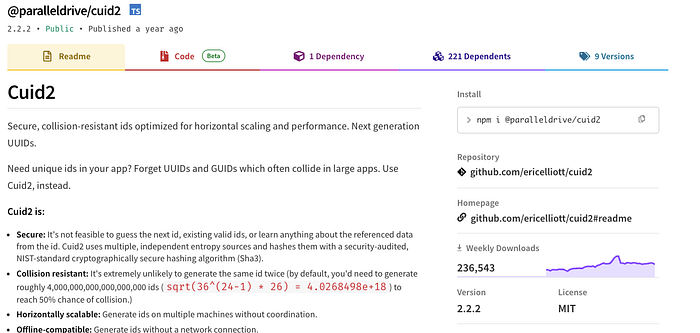 NPM:https://www.npmjs.com/package/@paralleldrive/cuid2