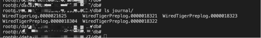 基于以上背景,因此就有了 WAL 模块的存在,在数据写入到 B+ tree 前,会提前写 WAL 日志,每个写事物对应一个完整 wal 日志,这样当服务器异常重启或者进程重启的时候,就可以通过 WAL 顺序回放这些日志完成数据恢复。MongoDB 的 WAL 数据存储在 journal 目录中: