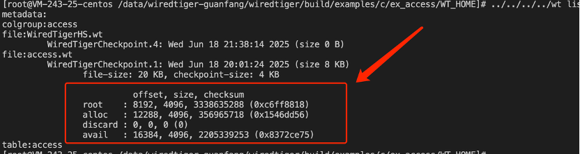 hotbackup 主要是完成物理 wt 文件的完整一致性拷贝,每个表都有自己的 checkpoint.addr(这里面保存了 root 及其他 ext meta)信息,这些信息存储在 WiredTiger.wt 元数据文件中。