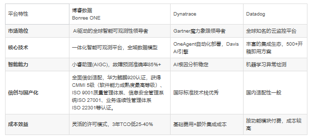 l 成本敏感且需快速见效的企业:博睿数据提供更为灵活的许可模式和更高的投资回报率,适合追求性价比的客户。