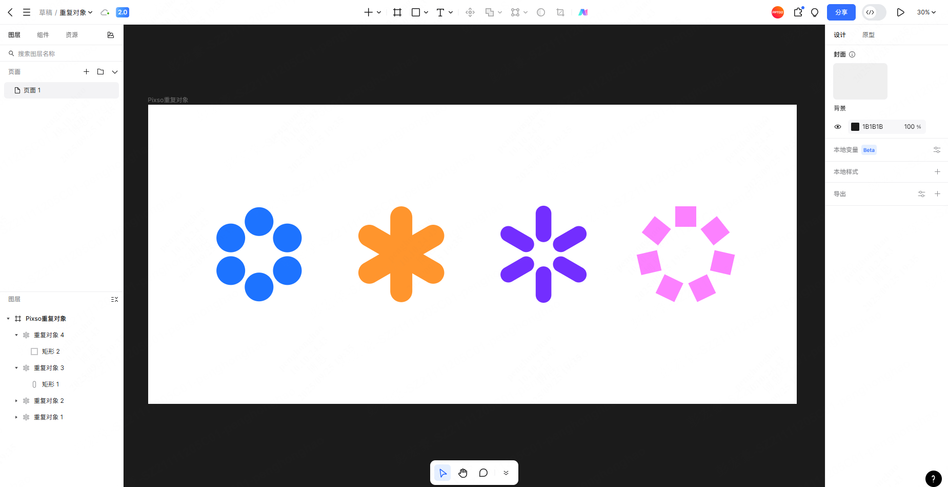 下面,我们通过一个简单的案例,来详细介绍 Pixso 重复对象功能的具体使用步骤。