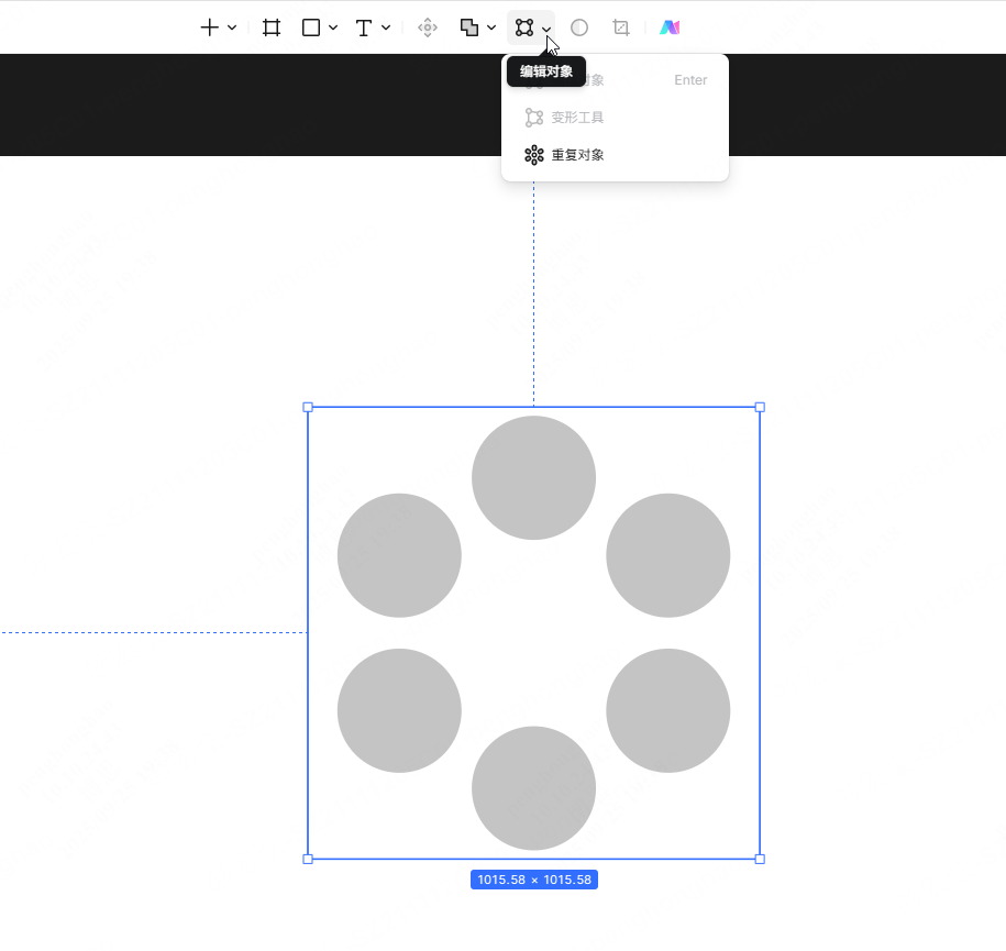 选中你刚刚创建好的圆形,点击顶部工具栏的“编辑对象”,选择下方的“重复对象”,圆形就会立刻被复制并环绕排列开来。