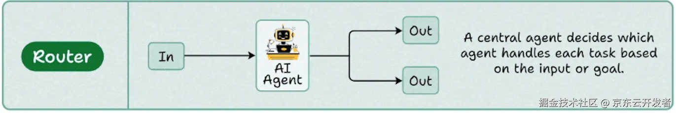•根据 LLM 路由,通过提示语言模型分析输入,并输出指示下一步或目标的标识符或指令。这里有显式路由和隐式路由两类,显示直接使用智能体的结构化输出来确定将消息路由到哪个智能体。隐式路由是将下游智能体包装成工具函数,这样路由智能体就可以根据用户查询决定调用哪个工具。
