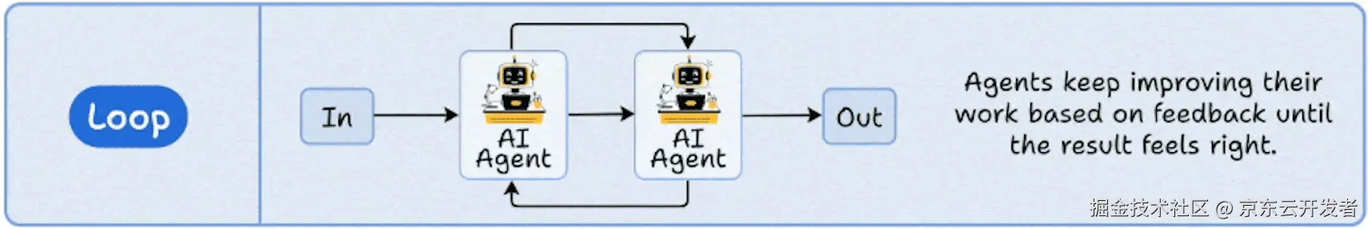 智能体不断优化自身输出,直到达到预期质量。非常适合校对、报告生成或创意迭代,在这些场景中,系统会在确定最终结果前再次思考。反思就是在此模式上进行的优化。