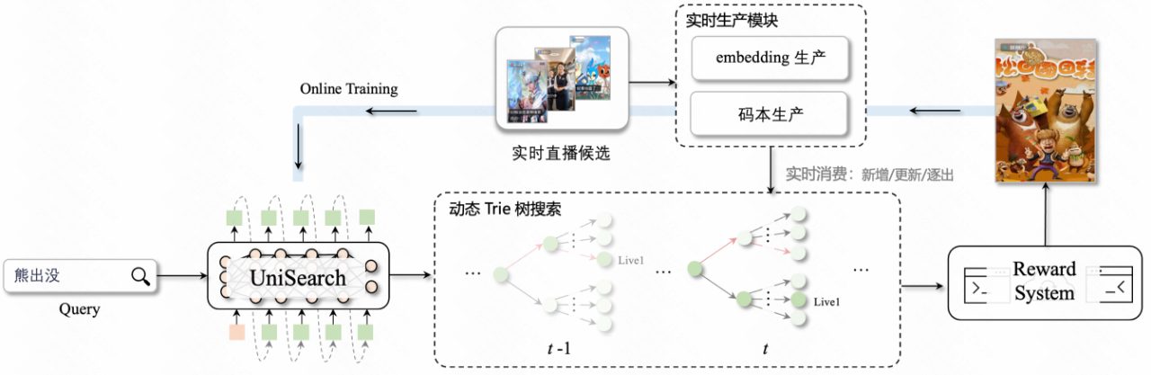 创新生成式搜索架构 UniSearch,首次实现编码和生成联训,打造真正的端到端生成式搜索方案,并在直播搜索场景中创造了近两年最大的直播间进间数收益。