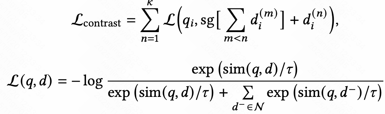 1.Contrastive Learning:学习搜索链路的排序逻辑,提升模型的排序性能。采用分段可学习的 ListWise InfoNCE Loss,将 Query 对应下低于当前视频档位的其他视频作为负样本,同时在同 Batch 内采样随机负例。