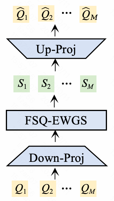 1.FSQ 量化:以 Query 为例,Query 侧拼接多组可学习的 Token,经过 Encoder 编码产出多组稠密向量 Q_i,经过 FSQ 量化为离线语义 ID。