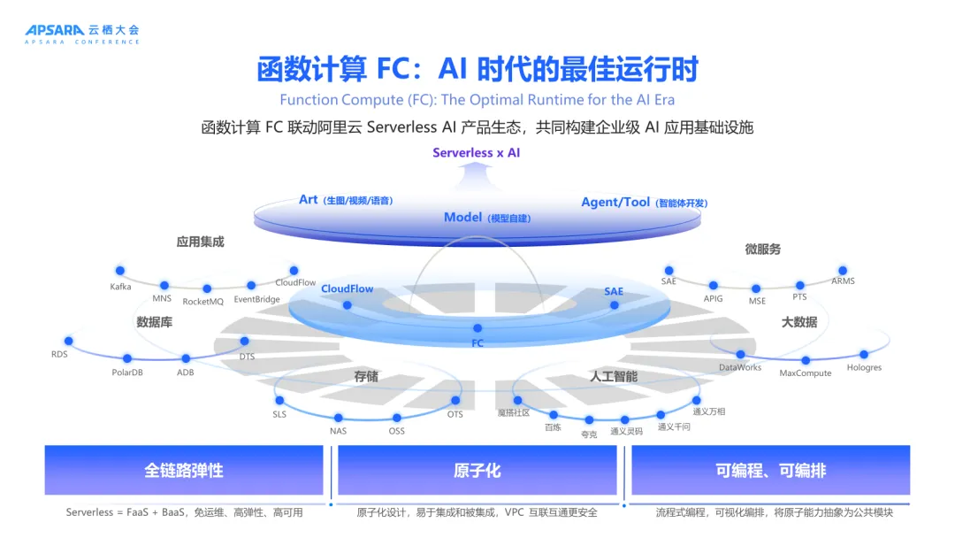 作为 AI 时代的最佳运行时,函数计算 FC 业界首推从 Serverless 进化为 Serverless AI,推出三大核心运行时底座: