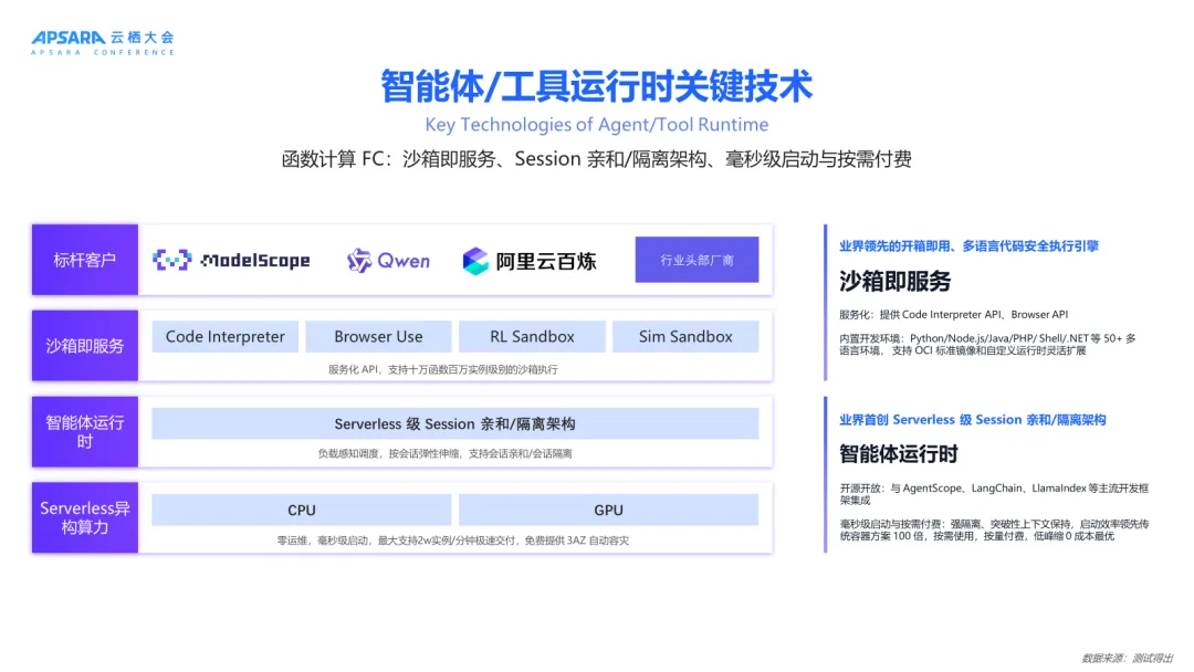 首创 Serverless 级会话亲和/隔离架构,通过毫秒级启动和上下文保持大幅提升智能体开发、部署和运行效率,性能超越传统方案 100 倍。