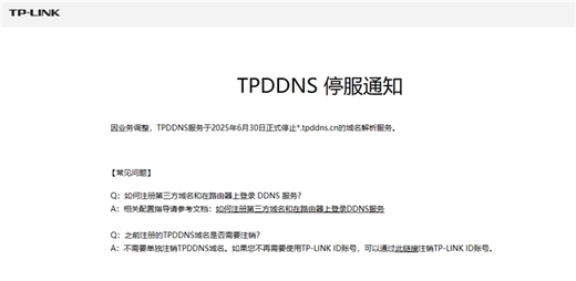 甚至一些知名大厂也未能幸免。TP-LINK 作为路由器巨头,曾长期提供 TPDDNS 动态域名解析服务,但在合规压力和改造成本的双重作用下,最终在 2025 年初宣布将于 6 月 30 日停止运营,并在公告中建议用户转向合规服务商。连 TP-LINK 这样的厂商都扛不住,更不用说那些规模更小的团队了。