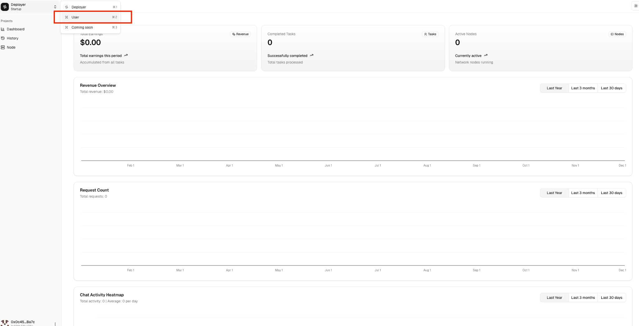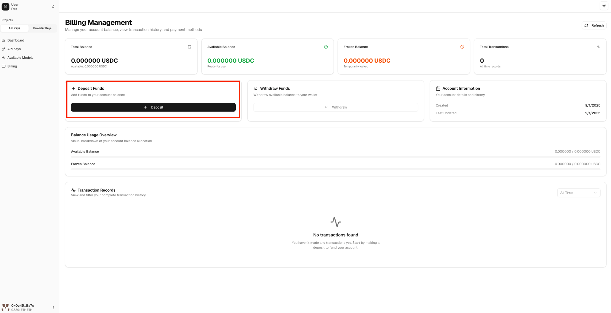 在侧边栏点击 Billing(账单),然后点击 Deposit(充值/质押)